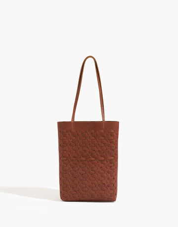 Tote bag diseñada con una trama horizontal, ideal para el uso diario confeccionada en cuero liso, curtido vegetal. Cuenta con un bolsillo interno. Entra una laptop. En su interior no está forrada.