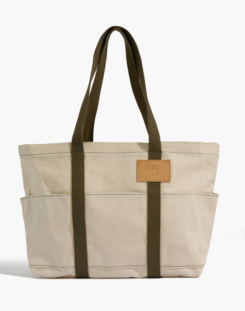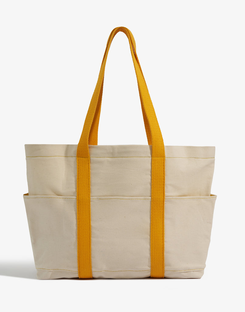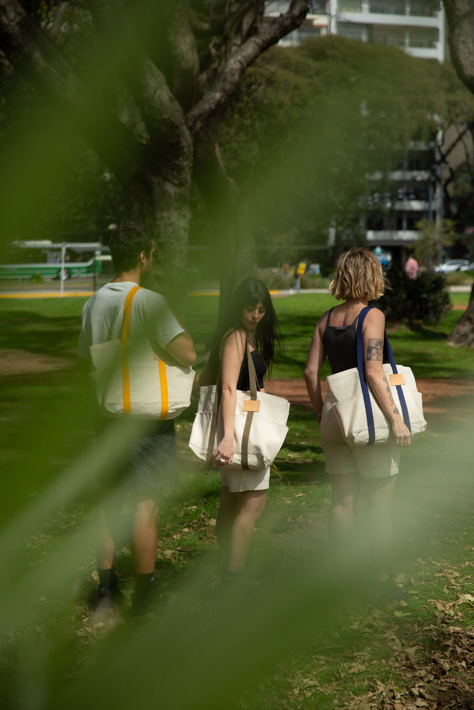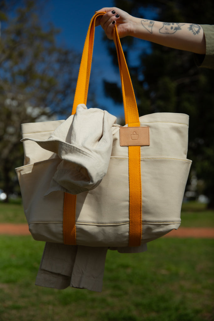 Bolso amplio ideal para el día a día con diseño práctico y funcional que cuenta con seis bolsillos externos alrededor y un bolsillo interno. Confeccionado en cascarilla 100% algodón, la misma tela utilizada en nuestros pantalones y sacos crudos, pero teñida de forma artesanal con tintes naturales en colaboración con Flor Cacciabue de @casaflorece. El color suela se obtiene a partir de cáscara de cebolla, mientras que el gris verdoso proviene de la yerba mate. Gracias a este proceso, cada pieza es única.