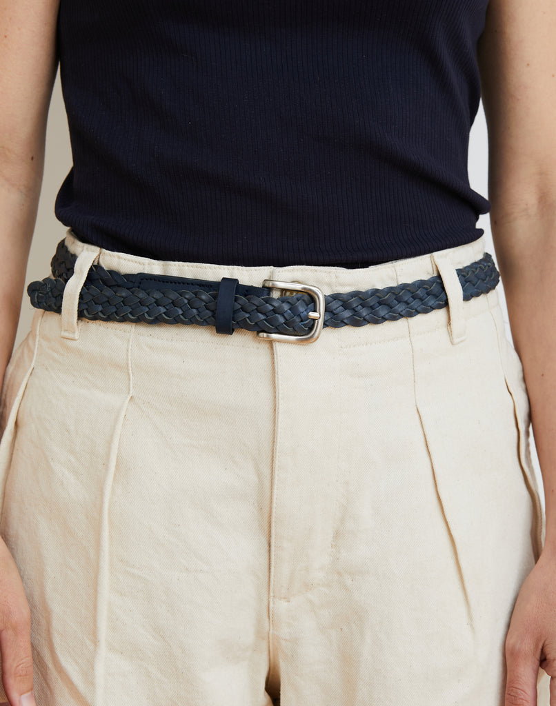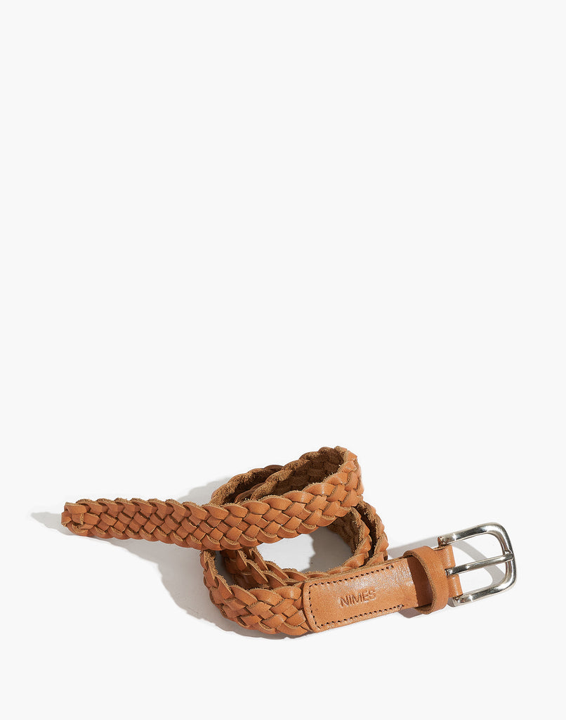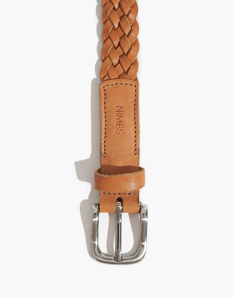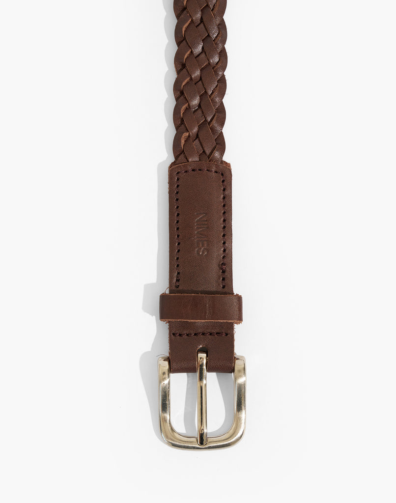 Cinturón de cuero liso curtido vegetal, trenzado a mano de 2,5cm de ancho. Su diseño hace que se adapte a gran amplitud de talles ya que puede ajustarse fácilmente en cualquier punto del trenzado.