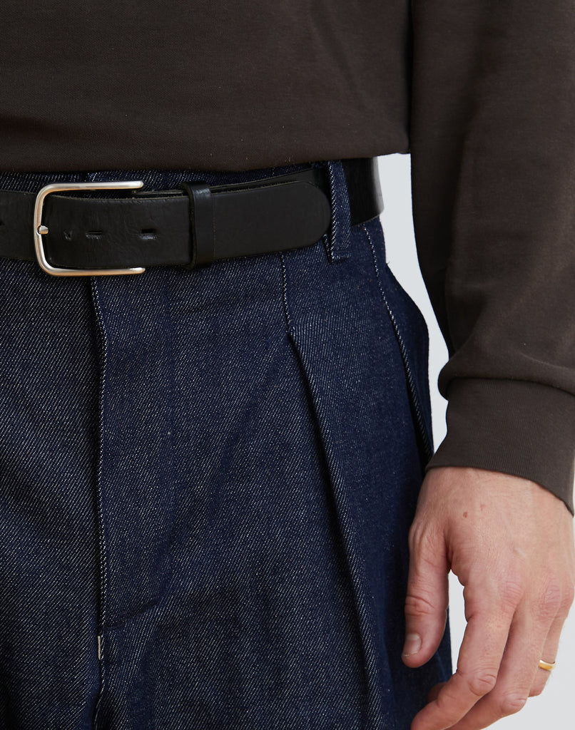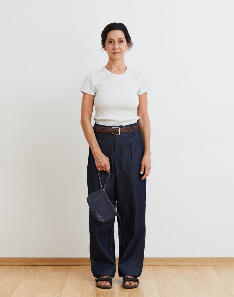 Pantalon unisex de tiro medio y corte recto con pinzas delanteras. Se puede usar tiro alto, medio o bajo según el talle que elijas y el estilo que más te guste. Confeccionado en denim 100% algodón sin procesos de lavado previos.