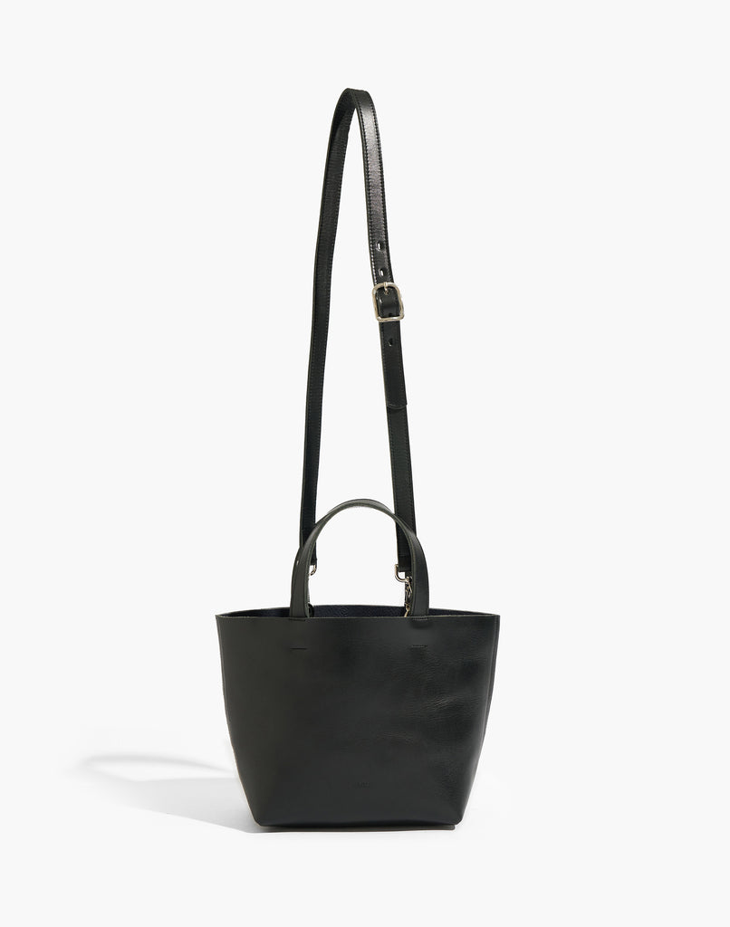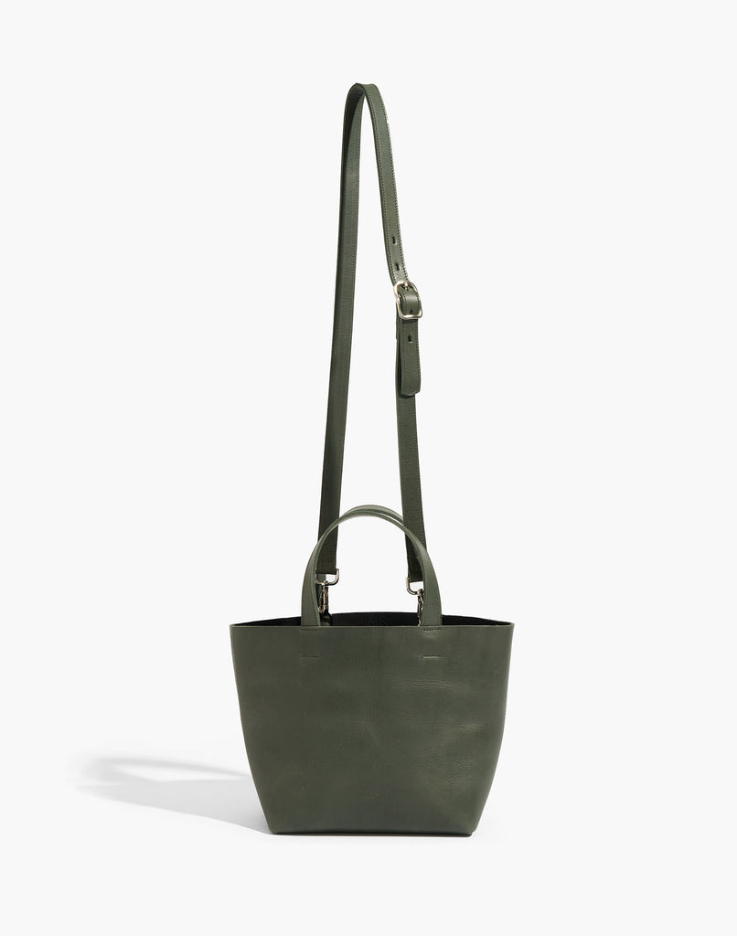 Cartera de mano que reinventa la clásica Gorriti pero en este caso, con una correa desmontable y regulable que permite llevarla colgada al hombro o cruzada. Está confeccionada en cuero liso curtido vegetal y su interior está forrado con cuero graneado fino a contratono. Además posee un bolsillo con cierre metálico.