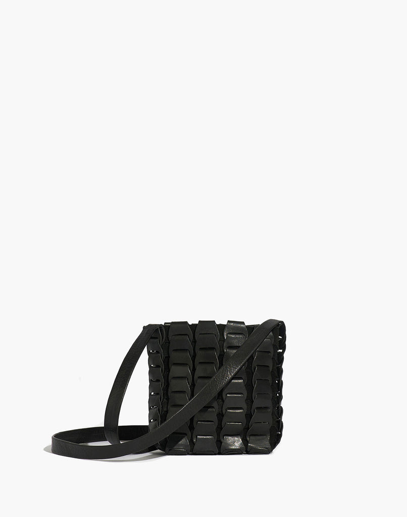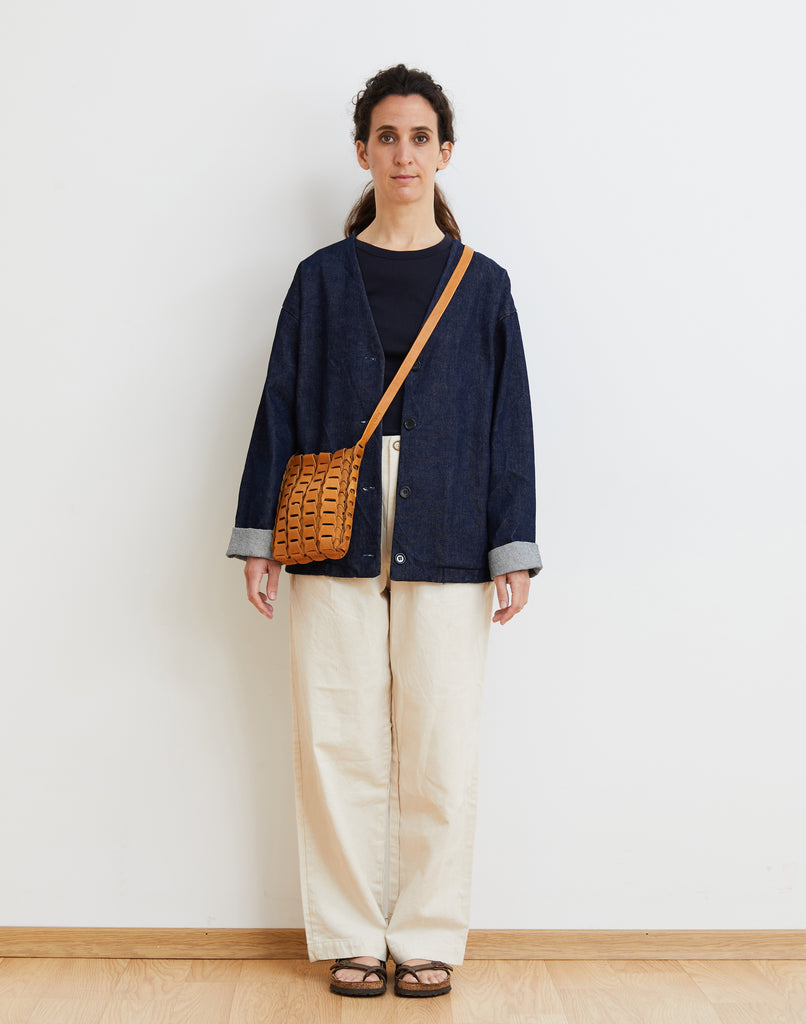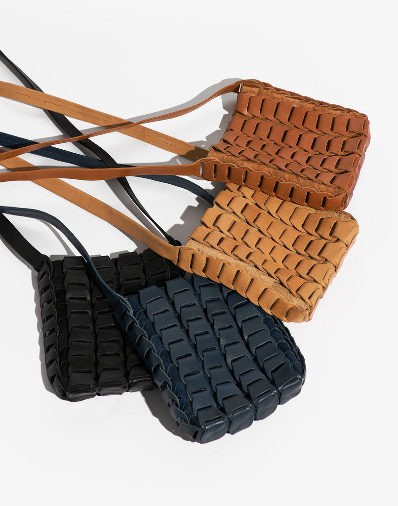 Bandolera que reinventa nuestra clásica cartera Basket en formato pequeño, diseñada para llevar colgada al hombro gracias a su correa larga. Ensamblada a mano sin costuras, con cuero graneado fino curtido vegetal. En su interior no está forrada y se cierra con broche a presión.
