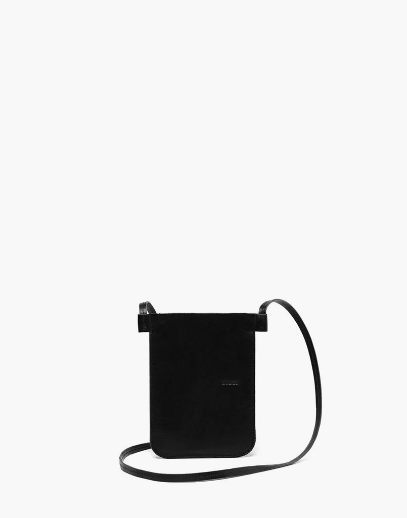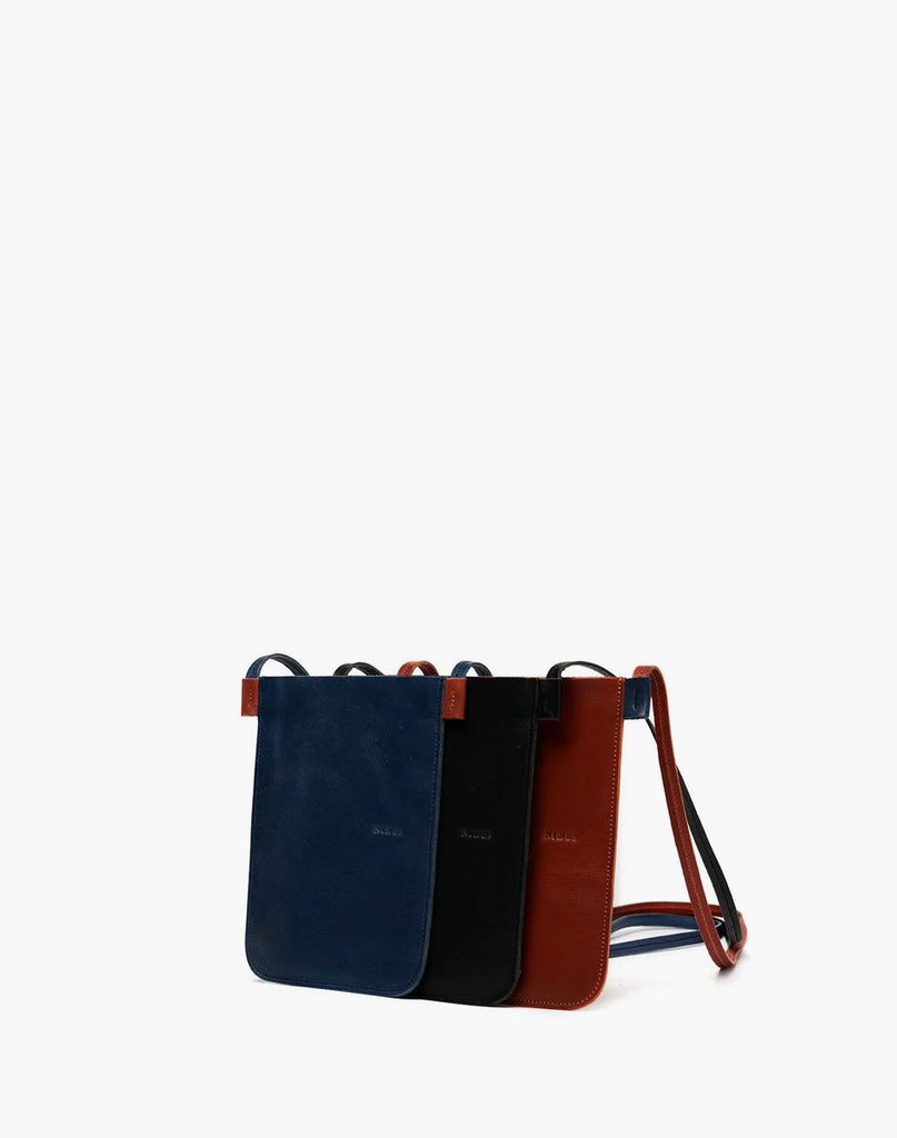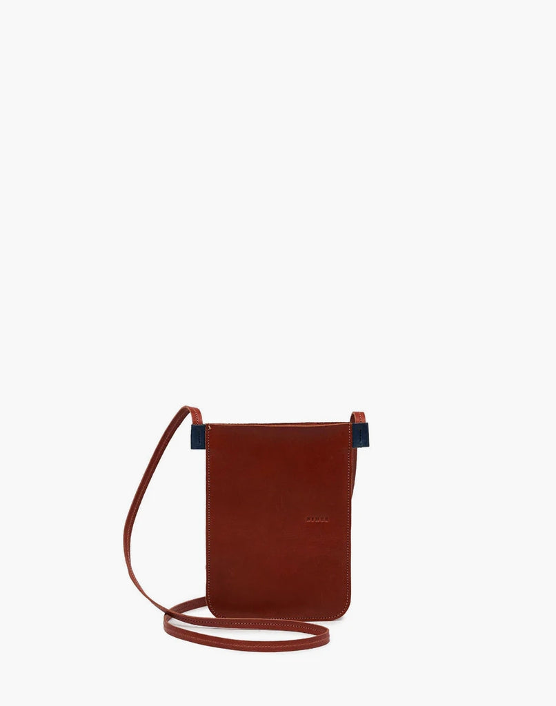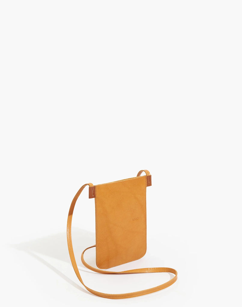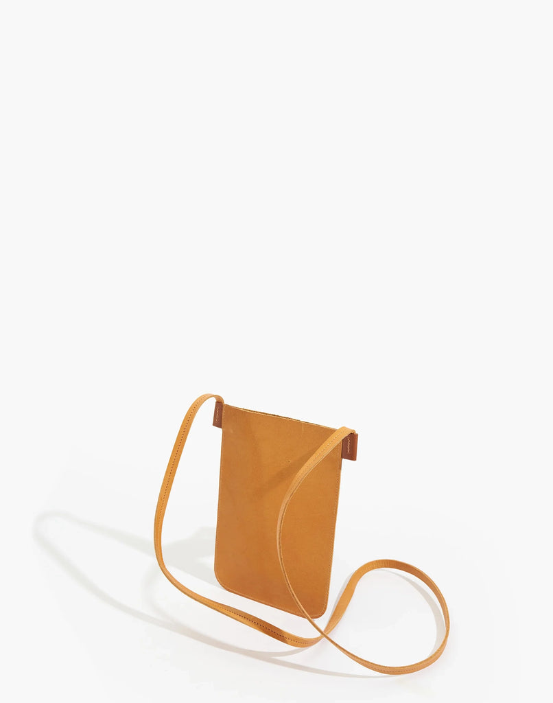 Mini sobre plano tipo bandolera, diseñado para llevar cruzado gracias a su correa larga fija. Está confeccionado en cuero liso, curtido vegetal, y con un interior sin forrar.